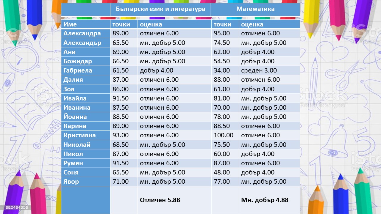 Учениците от 4.г клас /през учебната 2024/2025 г / се справиха повече от чудесно на проведените в края на начален етап изпити по български език и матеманика /НВО/.